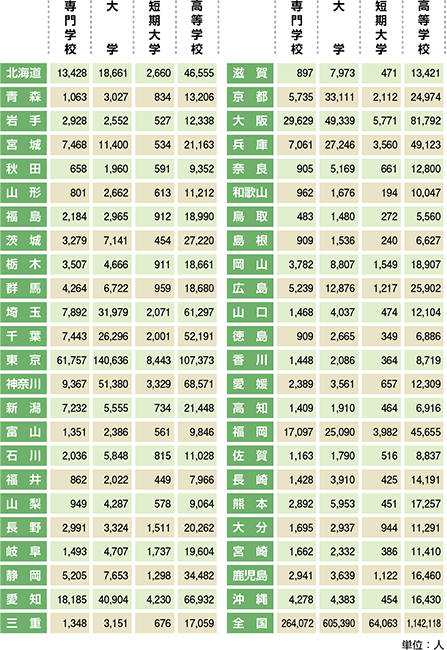 | 都道府県別/専門学校・大学・短期大学・高等学校 |