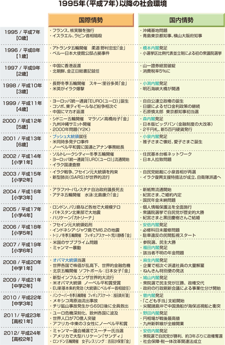 | 現在の高校3年生が育った時代背景を理解するための一助として、ご高覧いただけ れば幸いです。 |