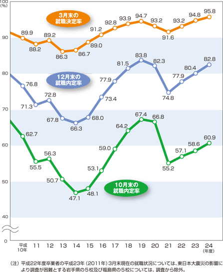 | 調査時期: | 各年の10月末現在、12月末現在、翌年3月(卒業月)末現在 |