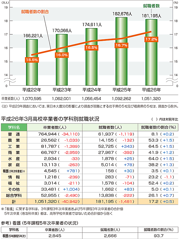 | データ資料: | 「平成26年3月高等学校卒業者の就職状況(平成26年3月末現在)に関する調査について」 <文部科学省初等中等教育局児童生徒課> |
