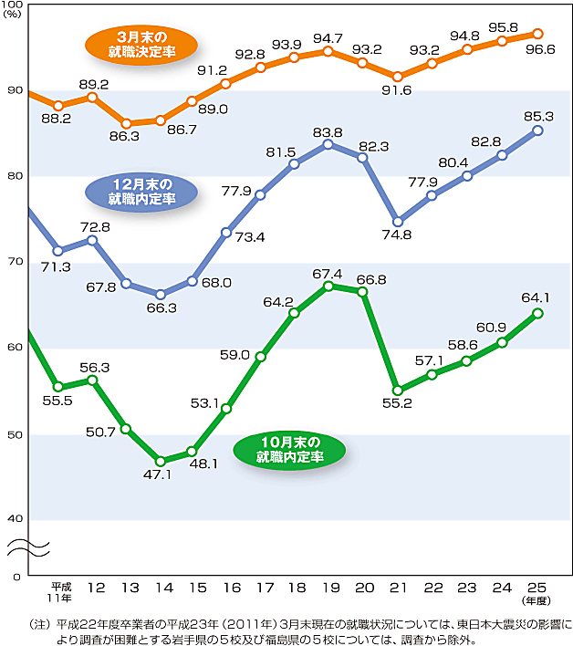 | 調査時期: | 各年の10月末現在、12月末現在、翌年3月(卒業月)末現在 |