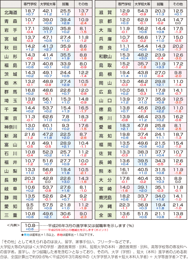 | データ資料: | 平成26年度学校基本調査報告書(平成26年12月発行)より <文部科学省生涯学習政策局政策課調査統計企画室発行> |