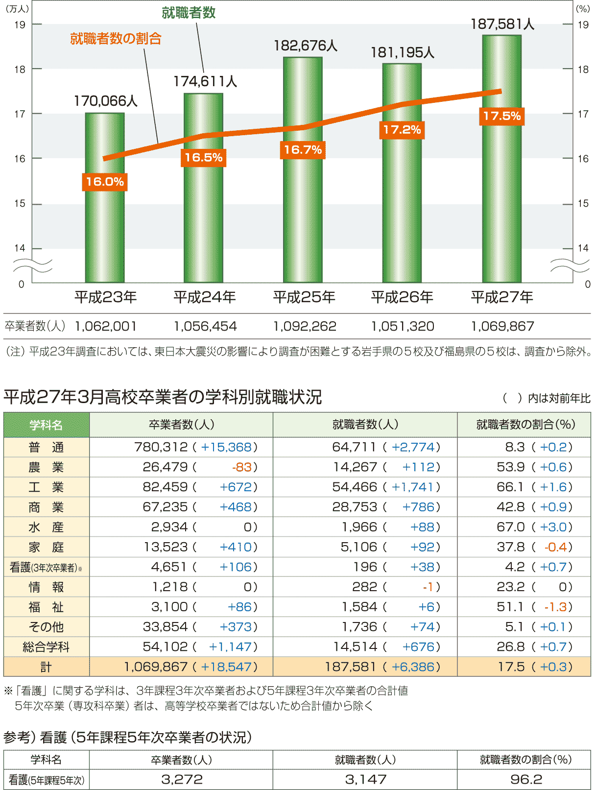 | データ資料: | 「平成27年3月高等学校卒業者の就職状況(平成27年3月末現在)に関する調査について」 <文部科学省初等中等教育局児童生徒課> |