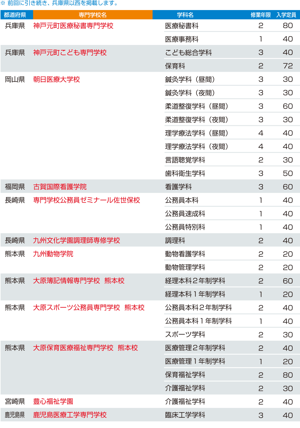 | ※ | 各都道府県にて認可を受け、2016年4月に開校された私立の専修学校の専門課程を記載しています。 各都道府県の私立学校担当の部署へ調査した結果です。 |