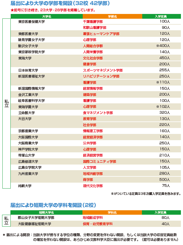 | データ資料: | 平成30年度開設予定の大学の学部等の設置届出について (文部科学省ホームページ)より表にして作成 |