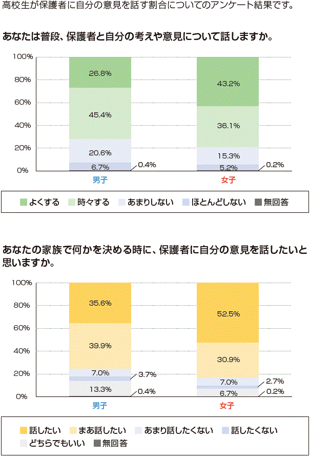 高校生が保護者に自分の意見を話す割合