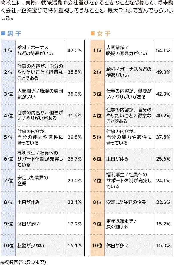 将来、働く会社/企業を選ぶときに重視すること