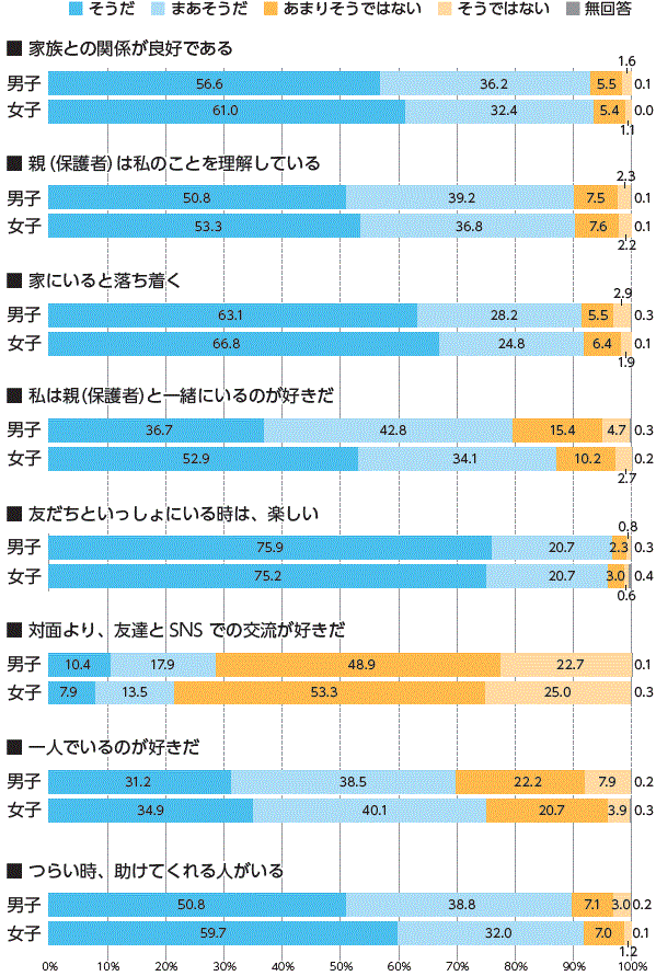 | データ資料 | : | 「コロナ禍を経験した高校生の生活と意識に関する調査報告書」国立青少年教育振興機構ホームページより |