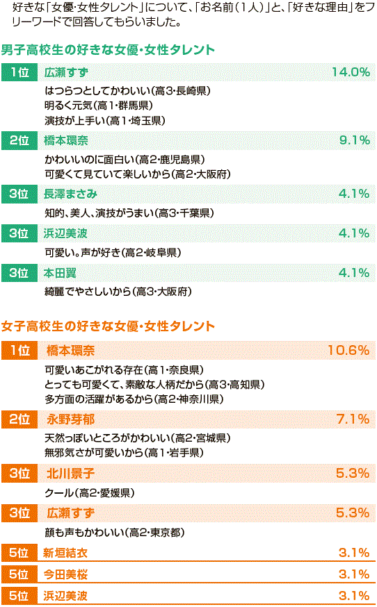 データ資料 JSインターネット調査「高校生ライフランキング」集計結果より