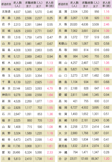 ※学校・公共職業安定所の紹介を希望する生徒の状況を取りまとめたものです。 発表時期:平成17年11月データ資料:平成18年3月高校・中学新卒者の就職内定状況等(平成17年9月末現在)について <厚生労働省> |