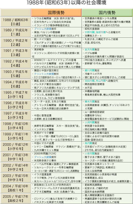 | 瀬戸大橋が開通した年に、現在の高校3年生は生まれました。彼らの育った時代背景を理解するための一助として、ご高覧いただければ幸いです。 |