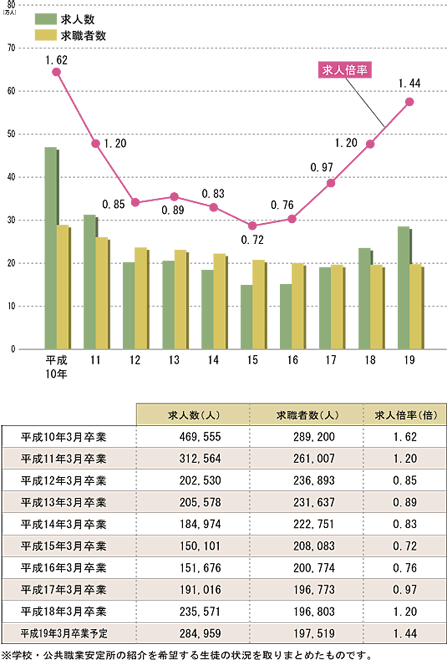 | データ資料:平成18年度高校・中学新卒者の就職内定状況等(平成18年9月末現在) について<厚生労働省> |