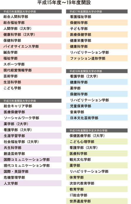 | データ資料:各年の開設予定大学等一覧<文部科学省> ※平成19年度は、平成18年11月現在のものです。 |