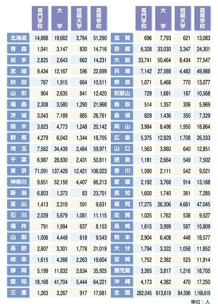 | 都道府県別/専門学校・大学・短期大学・高等学校 |