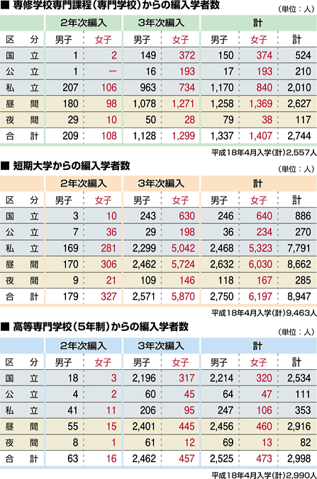 | 調査時期:平成19年5月1日現在 データ資料:平成19年度学校基本調査速報(平成19年8月発行)より <文部科学省生涯学習政策局調査企画課発行> |