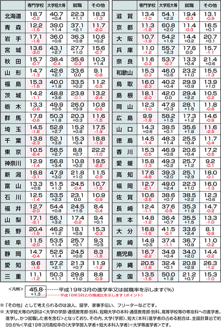 | 調査時期:平成19年5月1日現在 データ資料:平成19年度学校基本調査速報(平成19年8月発行)より <文部科学省生涯学習政策局調査企画課発行> |