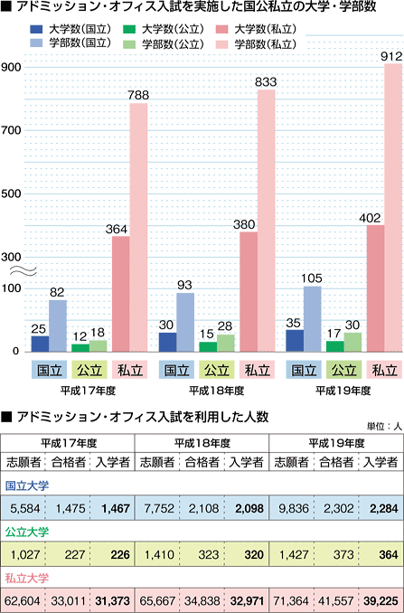 | 発表時期:平成18年9月12日、平成19年9月25日 データ資料:国公私立大学入学者選抜実施状況の概要<文部科学省> |