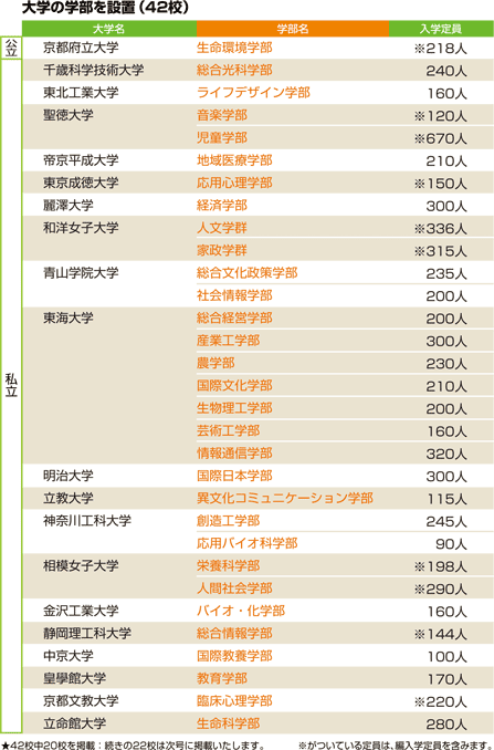 | 発表時期:平成19年6月~9月 データ資料:平成20年度開設予定の大学の学部等の設置届出一覧 発 行:文部科学省 |
