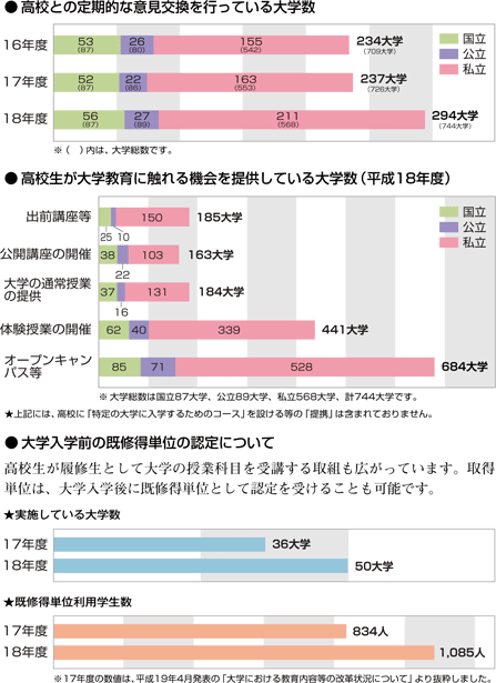 | ここでの「連携」とは、高校との定期的な意見交換や出前講座など、高校と大 学の連携のもとに行われる教育活動を指します。 |
