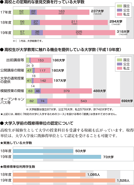| ここでの「連携」とは、高校との定期的な意見交換や出前講座など、高校と大学の連携のもとに行われる教育活動を指します。 |