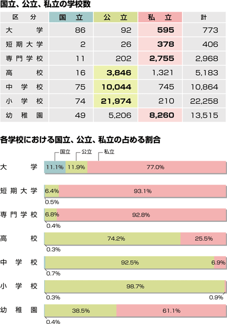 | ※専門学校の数値のみ平成20年度学校基本調査報告書(2008年12月発行)より | |