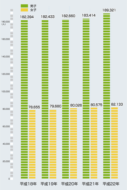 | データ資料: | 各年の学校基本調査報告書<文部科学省> |