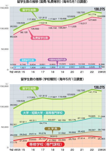 | データ資料: | 「平成23年度外国人留学生在籍状況調査結果」独立行政法人日本学生支援機構 |