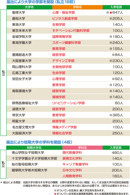 | データ資料: | 平成24年度開設予定の大学の学部等の設置届出一覧 |
