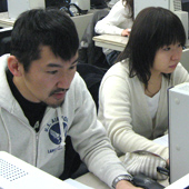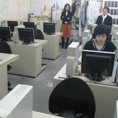 コンピュータの製図ソフトを使い、洋服の形を決める型紙を作ります。紙に描くよりも修正がしやすいといったメリットがあります。