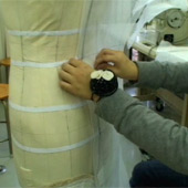 型紙の指示どおりに布地を切って、洋服を縫う仕事です。コレクションや発表会などで使われる1点ものの洋服を作ることもあります。