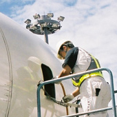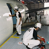飛行機のエンジンやタイヤなどに問題がないか、くわしく調べて整備をします。飛行機の安全を支える仕事です。
