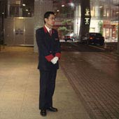 ホテルの入り口でお客さまを迎え、ドアの開け閉めや案内をします。ていねいな言葉づかいや、お客さまへの気配りが大切です。