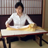 生地を切り、手で縫って「きもの」や「はかま」などの和服をつくる仕事です。和裁教室の先生として活躍する人もいます。