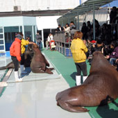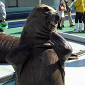 動物園や水族館が仕事場。イルカやアザラシなどの動物が、お客さまの前で楽しいショーができるように訓練や世話をします。