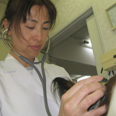 動物のお医者さんです。犬や猫などのペットや、牛・馬・羊・ブタなどが病気にかかっていないか調べたり、治療したりします。