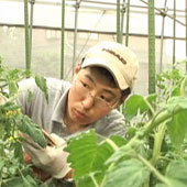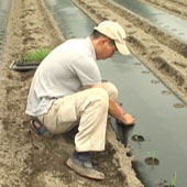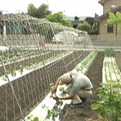 田や畑で、米や野菜、果物などを育てる仕事です。でき上がった農作物を販売して収入を得ています。家族で働く人もいます。
