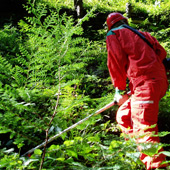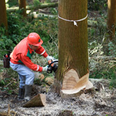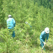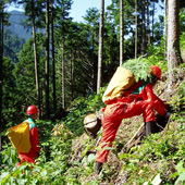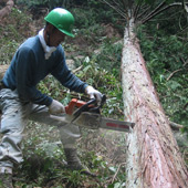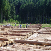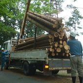 木材にするための木を山に植え、育てる仕事です。また、木を切って一定の長さにそろえたり、木を集めて運ぶ作業もあります。