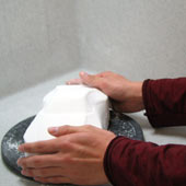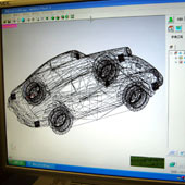 カーデザイナーが描いたスケッチをもとに、粘土やプラスチック、コンピュータの画像を使って、立体的に見本をつくる仕事です。
