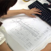 道路、河川、橋、上下水道、鉄道、公園などの土木工事の設計をする仕事です。地形や環境のことなど、安全性を考えて設計します。