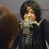 ラジオ番組の司会や、CMのナレーションなどを担当します。ラジオでは自分で曲を選んで紹介し、楽しい番組づくりをします。