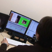 映像や写真のデータを、CG(コンピュータグラフィックス)のソフトを使って変化させます。