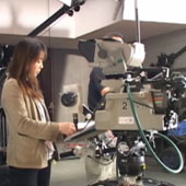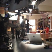 テレビ局のスタジオや野外で、カメラで映像をとる仕事です。カメラの向きや動き、撮影する範囲などに気をつけて撮影します。