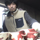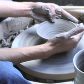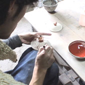 陶磁器と呼ばれる焼き物をつくる仕事です。土をこねて、ロクロを回して形をつくり、絵つけをして「かま」で焼きます。