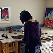 木版や石版などに絵を彫り、転写(うつしとる)ことで作品を描きます。日本画、洋画、風景画など、種類はいろいろあります。