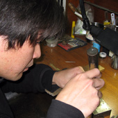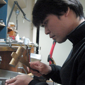 金属を使って、アクセサリーや小物などを作る仕事です。自分がイメージしたデザインを金属に彫り込んで作品にしていきます。