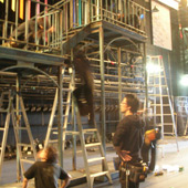 映画やテレビ、舞台などで使う道具やセットを用意します。場面に合わせた背景や室内から、さまざまな小道具までそろえます。