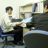 お客さまのところへ行って、コンピュータの修理などをする仕事です。新しくコンピュータを入れる場合にはその設置もします。