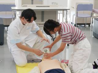 BLS(一次救命処置)や、点滴の滴下速度調整など学生が大学で学んだことを皆さんにお伝えします。