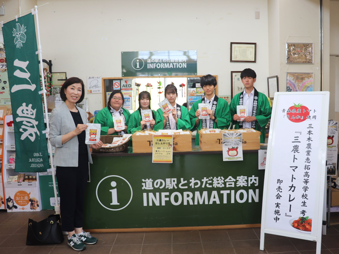 生徒たちは5月24・25日は三沢空港で、6月7日は道の駅とわだで試食販売会を実施。利用客に、愛情込めた甘酸っぱいカレーを召し上がれと呼びかけると、小さな子供から大人まで「美味しい」と好評。