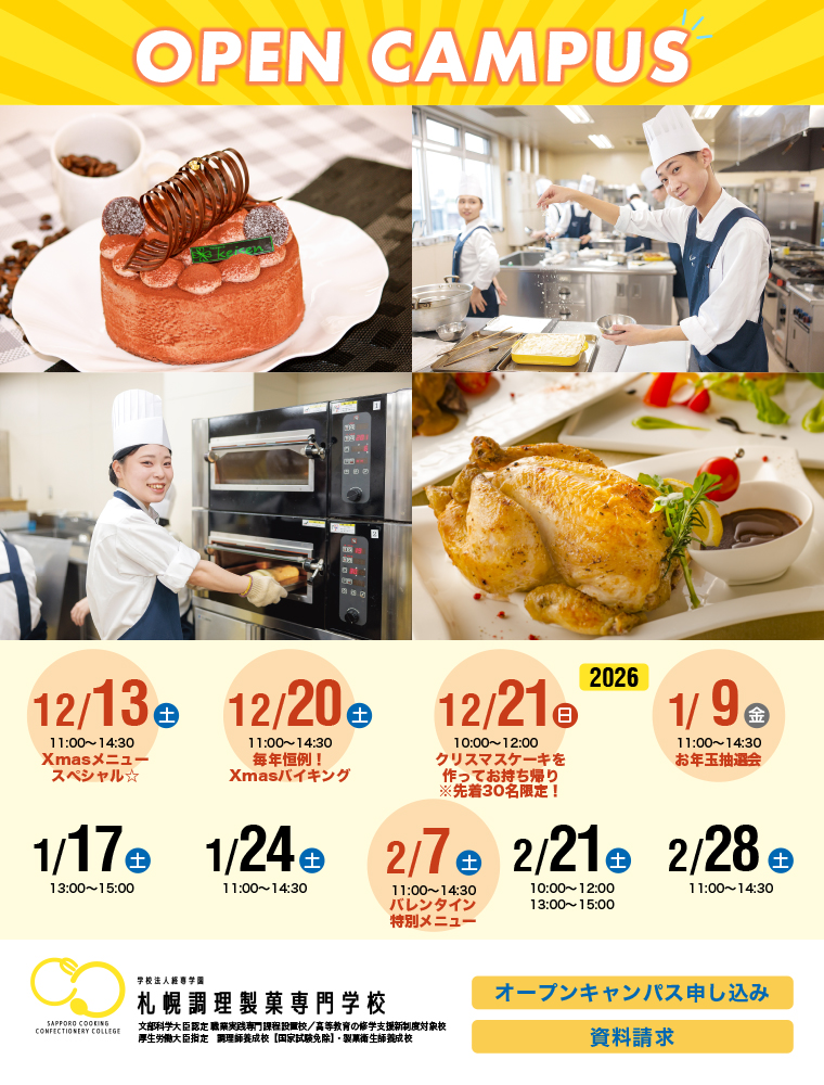 札幌調理製菓専門学校の説明会・オープンキャンパス情報